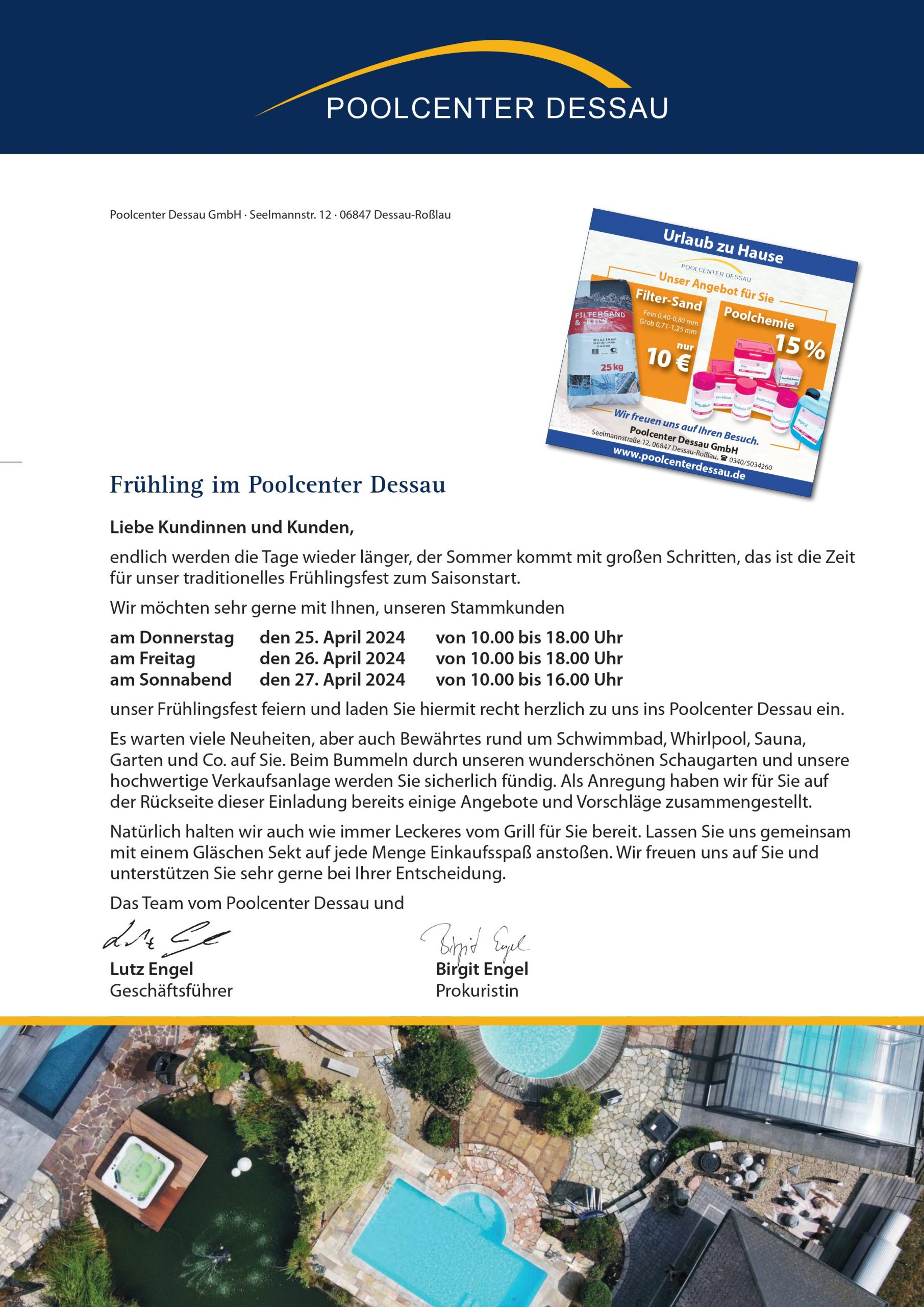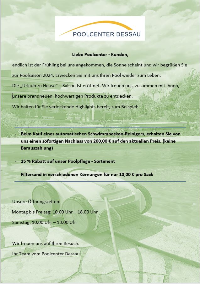 Die Zusammenarbeit mit dem Poolcenter Dessau war sehr freundlich, professionell und in allen Belangen optimal.