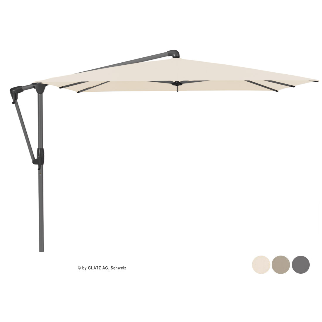 Als Evergreen unter den Freiarmschirmen präsentiert sich der SUNWING CASA EASY mit modifizierten Profilen und Gehäuseformen. Aufgrund der zentral angeordneten Bedienelemente lässt er sich leicht handhaben. Dank Seitenmast, an welchem das Schirmdach befestigt ist, benötigt der SUNWING CASA EASY wenig Platz und spendet größtmöglichen Schatten. Das Dach lässt sich sowohl mit einer selbstarretierenden Kurbel bedienen und bis zu 45° Grad beidseitig schräg stellen als auch 360° Grad
